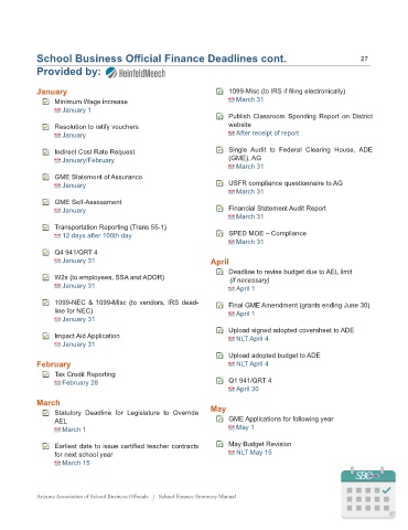School Business Official Finance Deadlines cont.                                                 27