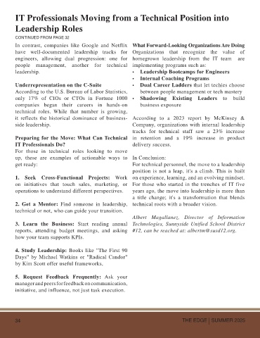 engineers, allowing dual progression: one for homegrown leadership from the IT team are