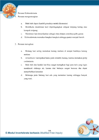 d. Echinodermata memakan bangkai-bangkai sehingga pantai menjadi bersih