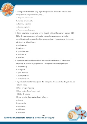 15. Siswa melakukan pengamatan hewan simetris bilateral, bersegmen-segmen, tidak