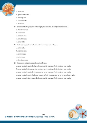 23. Echinodermata yang habitat hidupnya melekat di dasar perairan adalah…