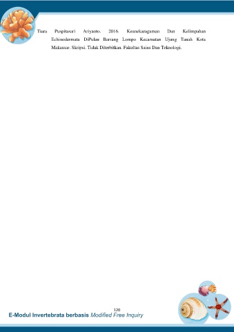 Tiara Puspitasari Ariyanto. 2016. Keanekaragaman Dan Kelimpahan Echinodermata DiPulau Barrang Lompo Kecamatan Ujung Tanah Kota Makassar. Skripsi. Tidak Diterbitkan. Fakultas Sains Dan Teknologi. 120