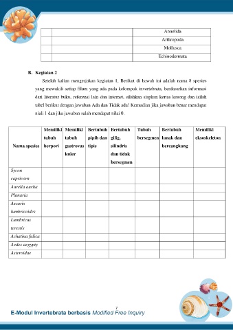 yang mewakili setiap filum yang ada pada kelompok invertebrata, berdasarkan informasi