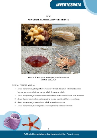 2. Siswa mampu menjelaskan invertebrata berdasarkan karakteristik dan struktur tubuh.