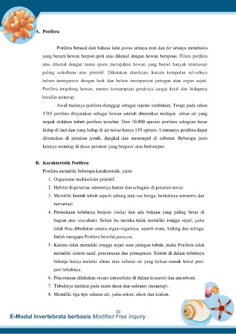 yang berarti hewan berpori-pori atau dikenal dengan hewan berspons. Filum porifera