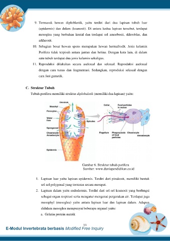 Tubuh porifera memiliki struktur diplobalstik (memiliki dua lapisan) yaitu: