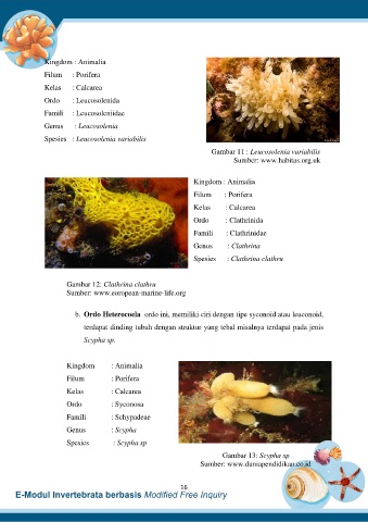 b. Ordo Heterocoela ordo ini, memiliki ciri dengan tipe syconoid atau leuconoid,