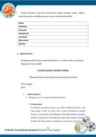 a. Mengamati ciri-ciri anggota kelompok Porifera