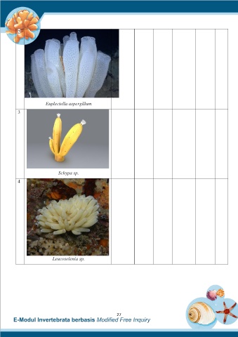 2 Euplectella aspergillum 3 Schypa sp. 4 Leucosolenia sp. 27