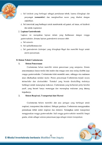 c. Sel gastrodermis (kelenjar) yang dilengkapi flagel dan memiliki fungsi untuk