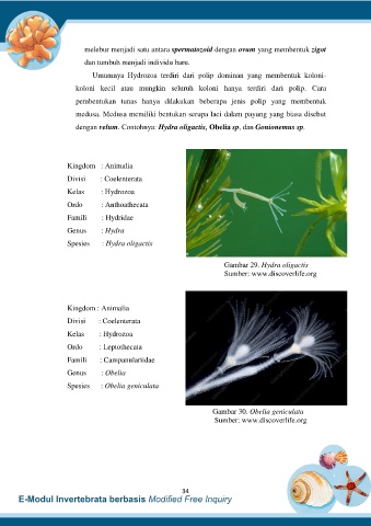dengan velum. Contohnya: Hydra oligactis, Obelia sp, dan Gonionemus sp.