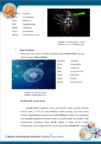 Salah satu contoh spesies dari kelas Scyphozoa ialah Aurelia aurita yang juga
