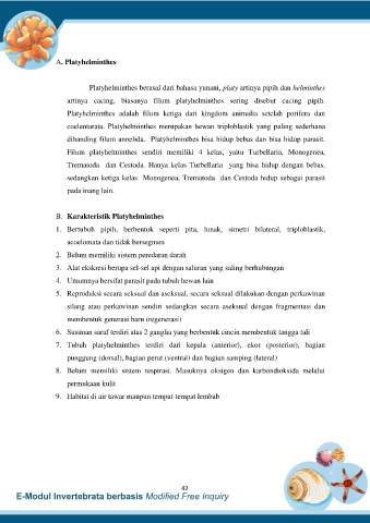 1. Bertubuh pipih, berbentuk seperti pita, lunak, simetri bilateral, triploblastik,