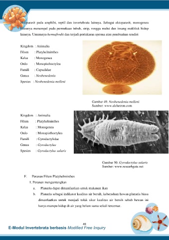 ektoparasit pada amphibi, reptil dan invertebrata lainnya. Sebagai ektoparasit, monogenea