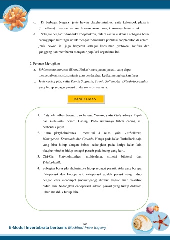 c. Di berbagai Negara jenis hewan platyhelminthes, yaitu kelompok planaria