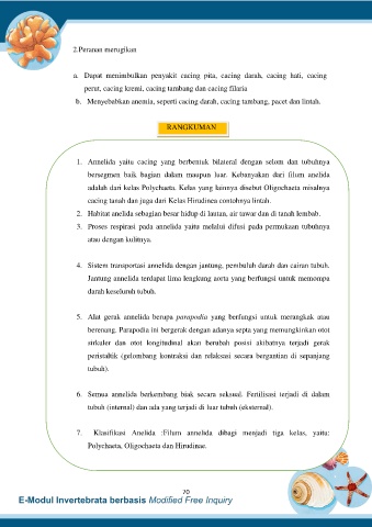 b. Menyebabkan anemia, seperti cacing darah, cacing tambang, pacet dan lintah.
