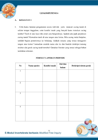 1. Coba kamu lakukan pengamatan secara individu yaitu mencari cacing tanah di