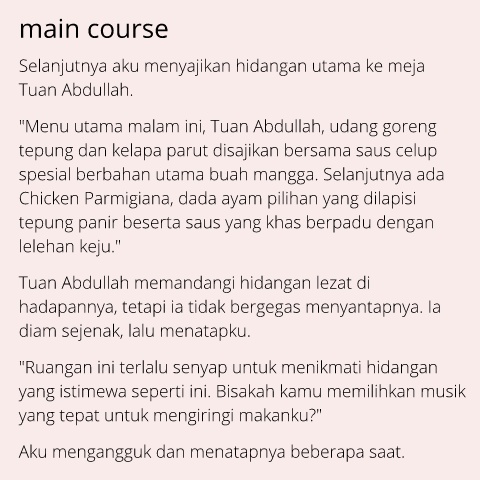 "Ruangan ini terlalu senyap untuk menikmati hidangan