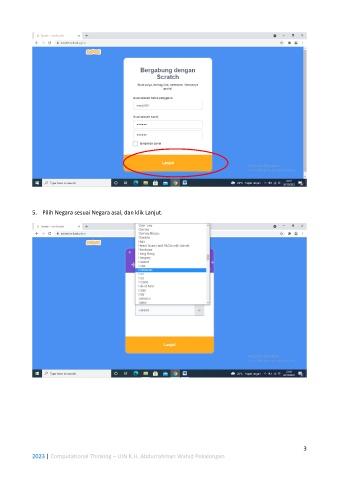 5. Pilih Negara sesuai Negara asal, dan klik Lanjut. 3 2023 | Computational Thinking – UIN K.H. Abdurrahman Wahid Pekalongan