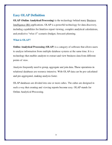 Intelligence (BI) applications. OLAP is a powerful technology for data discovery,