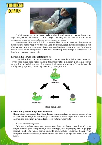 hewan, secara umum dibagi menjadi dua, yaitu daur hidup hewan tanpa metamorfosis dan