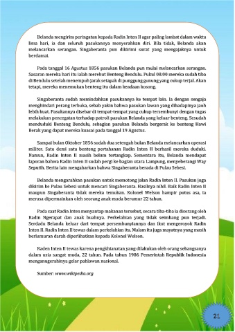 dikirim ke Pulau Sebesi untuk mencari Singaberanta. Hasilnya nihil. Baik Radin Inten II