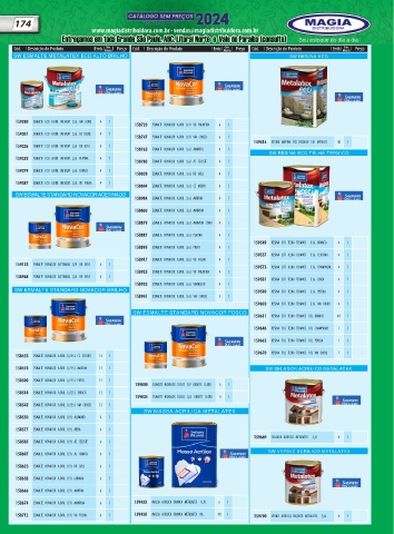 158712 ESMALTE NOVACOR A.BRIL 0,9L VD FOLHA 6 1 159450 MASSA ACRILICA BRANCA METALATEX 18L 40 1 159700 VERNIZ ACRILICO INCOLOR METALATEX 3,6L 4 1
