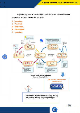 Replikasi fag pada E. coli sebagai model siklus litik. Gambaran umum