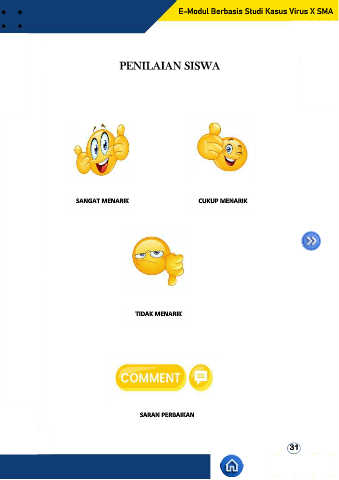 E-Modul Berbasis Studi Kasus Virus X SMA PENILAIAN SISWA SANGAT MENARIK CUKUP MENARIK TIDAK MENARIK SARAN PERBAIKAN 31