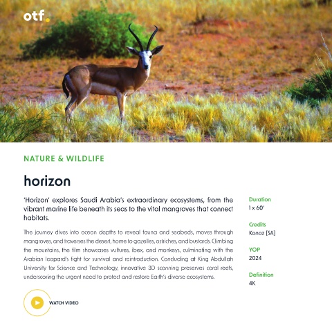 ‘Horizon’ explores Saudi  Arabia’s extraordinary ecosystems, from the           Duration                              ‘Maldives:  Water  Kingdom  of  the  Indian  Ocean’ invites  viewers  on         Duration