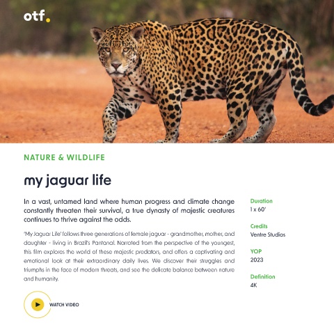 ‘My Jaguar Life’ follows three generations of female jaguar - grandmother, mother, and   Ventre Studios                Marking the 50th Anniversary of ‘Project Tiger’s’ this feature documentary offers intimate   Nature in Focus & See