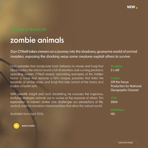 hijack bodies, the natural world is full of relentless and cunning predators 2 x 60’