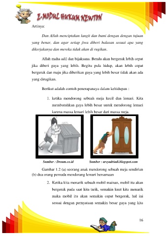 1. ketika mendorong sebuah meja kecil dan lemari. Kita