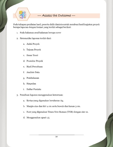 berupa laporan dengan format yang terdiri sebagai berikut: