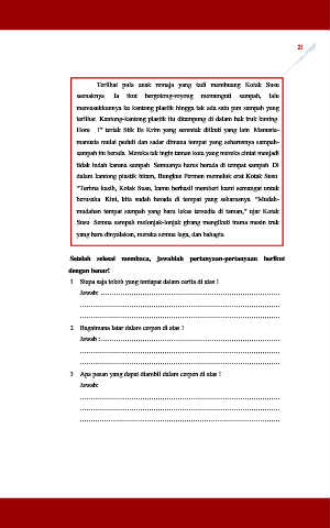 Setelah selesai membaca, jawablah pertanyaan-pertanyaan berikut