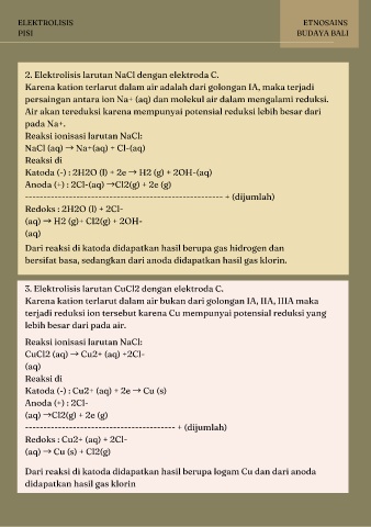 2. Elektrolisis larutan NaCl dengan elektroda C.