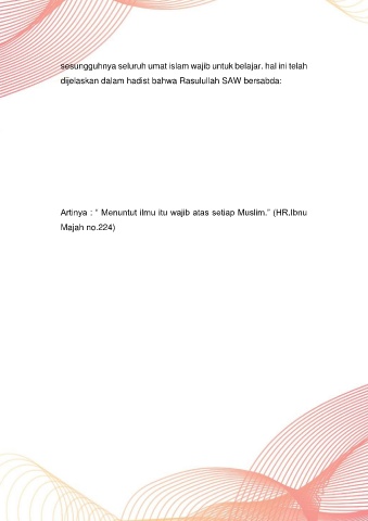 Artinya : “ Menuntut ilmu itu wajib atas setiap Muslim.” (HR.Ibnu