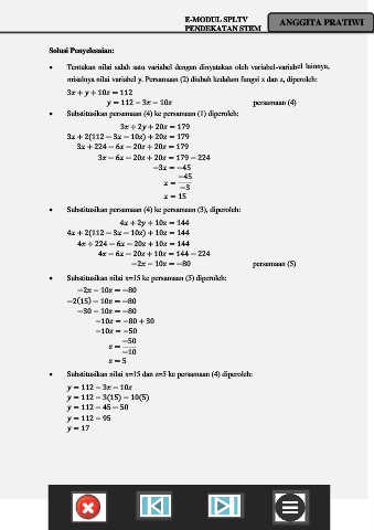 Substitusikan nilai x=15 dan z=5 ke persamaan (4) diperoleh: