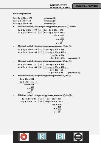 Eliminasi variabel y dan zdengan menggunakan persamaan (1) dan (2).