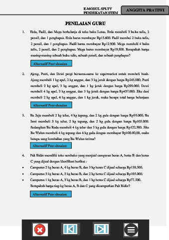pensil, dan 1 penghapus. Erda harus membayar Rp15.600. Fadil membei 2 buku tulis,