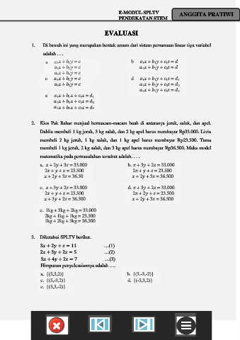 1. Di bawah ini yang merupakan bentuk umum dari sistem persamaan linear tiga variabel