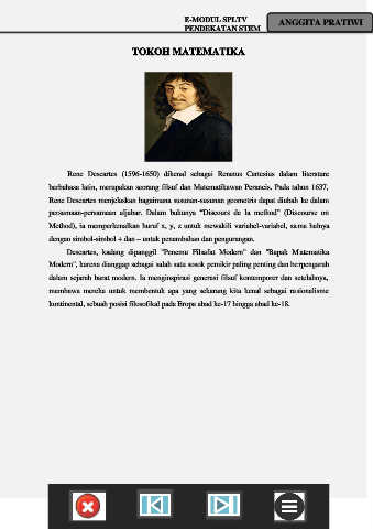 persamaan-persamaan aljabar. Dalam bukunya “Discours de la method” (Discourse on