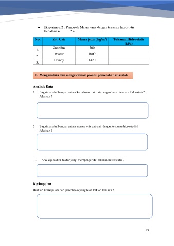 Eksperimen 2 : Pengaruh Massa jenis dengan tekanan hidrostatis