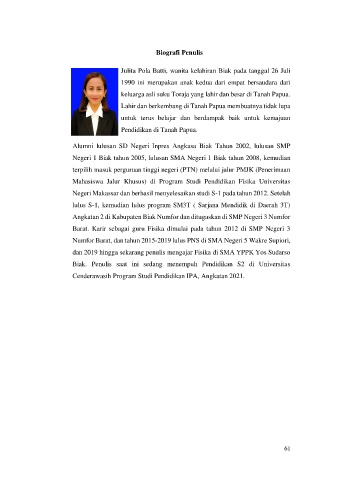 dan 2019 hingga sekarang penulis mengajar Fisika di SMA YPPK Yos Sudarso