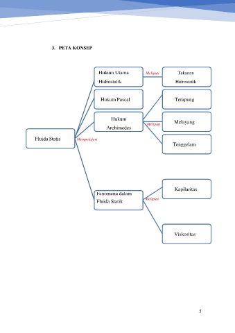 3. PETA KONSEP Hukum Utama Meliputi Tekanan Hidrostatik Hidrostatik Hukum Pascal Terapung Hukum Meliputi Melayang Archimedes Fluida Statis Mempelajari Tenggelam Kapilaritas Fenomena dalam Fluida Statik Meliputi Viskositas 5