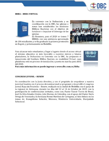 lanzamiento del Instituto Bíblico Bautista en modalidad Virtual, cuya