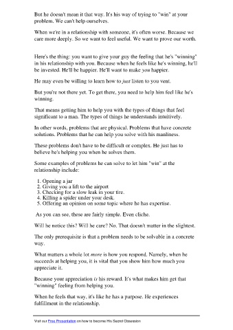 Here's the thing: you want to give your guy the feeling that he's "winning"