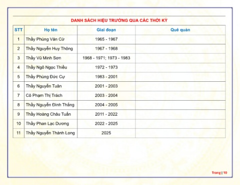DANH SÁCH HIỆU TRƯỞNG QUA CÁC THỜI KỲ