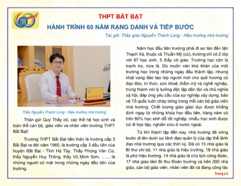 huyện Bất Bạt - Tỉnh Hà Tây. Thầy Phùng Văn Cừ, Bí thư chi bộ, 11 nhà giáo là hiệu trưởng, 18 nhà giáo