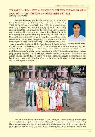 từng bước khẳng định được vị trí của mình qua những thành tích đã đạt. Trong mấy năm qua, tỉ lệ THPT Bất Bạt. Tổ chuyên môn Vật lí - Tin - KTCN đóng vai trò hết sức